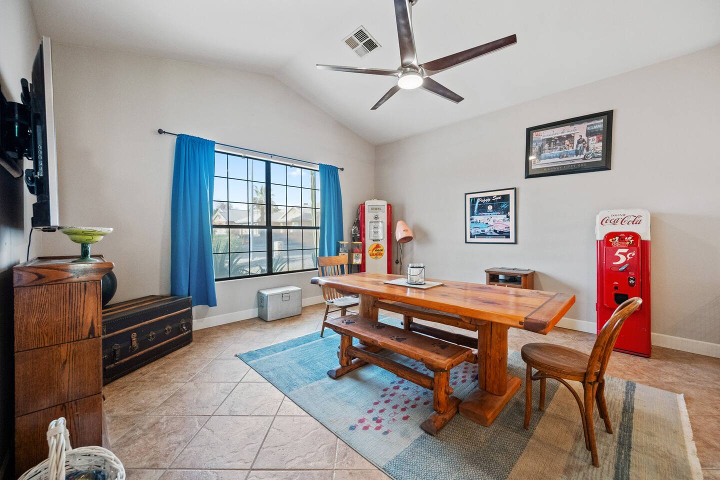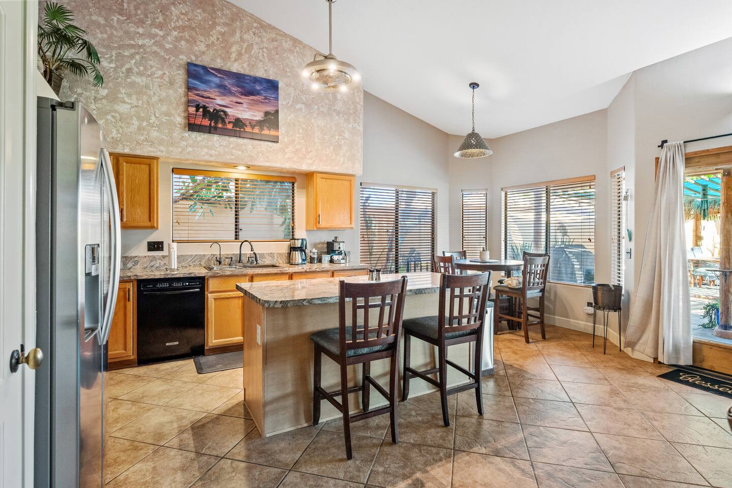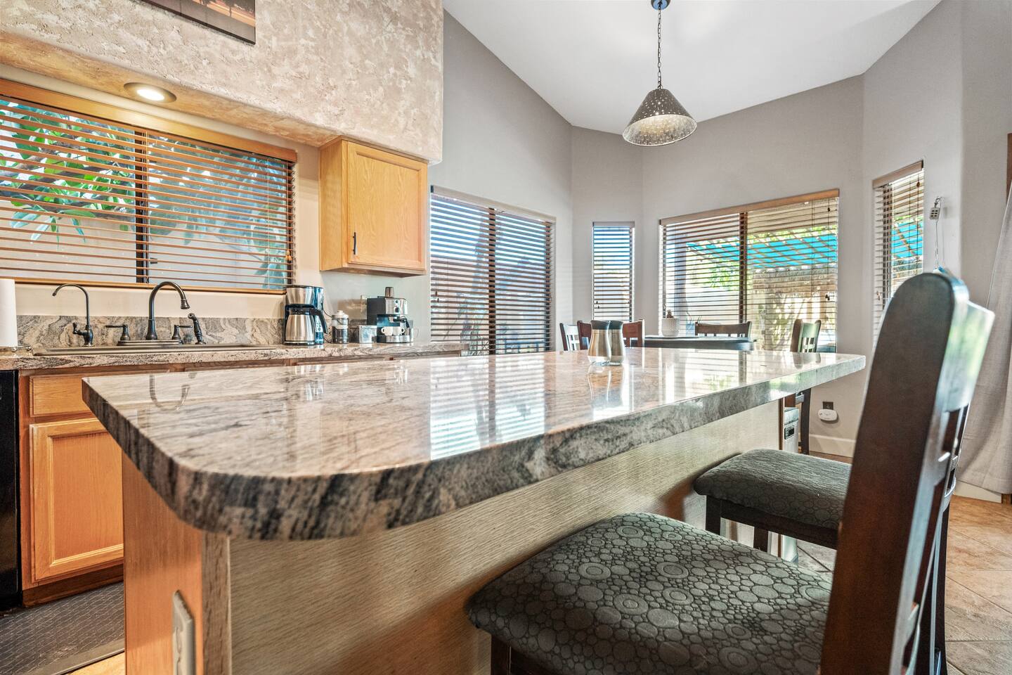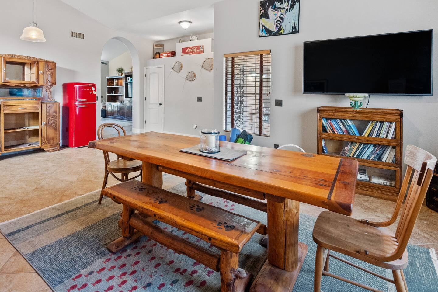 Located minutes from golf courses, hiking trails, and top Mesa attractions, this home is the perfect launch pad for both outdoor adventure and city fun. Your ideal home base in Mesa awaits — explore the details below. ★☆ NEARBY ATTRACTIONS & LANDMARK ☆★ .☛ 1.1 mi – Red Mountain Park .☛ 2.1 mi – Painted Mountain Golf Resort .☛ 6.7 mi – Usery Mountain Regional Park .☛ 11.5 mi – Arizona Museum of Natural History .☛ 12.3 mi – Lost Dutchman State Park .☛ 13.5 mi – Mesa Gateway Airport .☛ 12.4 mi – Riparian Preserve at Water Ranch .☛ 14.0 mi – Freestone District Park .☛ 22.0 mi – Phoenix Zoo .☛ 22.3 mi – Phoenix Sky Harbor International Airport .☛ 22.5 mi – Desert Botanical Garden ⚾ Baseball fans will love that the home is just a short drive from several MLB Spring Training stadiums, including those for the Cubs, Athletics, and Giants — making it the perfect home base for catching games during the season. ★☆ BEDROOM & BATHROOM ARRANGEMENT ☆★ 🛏️ BR1: 1 King Bed • Ensuite Bathroom 🛏️ BR2: 1 Queen Bed 🛏️ BR3: 1 Queen Bed 🛋️ Living Room: Air Mattress available for additional guests - please provide at least 48 hours’ notice if you’d like it set up for your stay. 🛁 Bathrooms: 2 total – ensuite master bath + shared hallway bath ★☆ LIVING ROOM ☆★ Gather in the spacious living room with vaulted ceilings, cozy seating, and a large smart TV. The open layout flows seamlessly into the dining and kitchen areas, making it easy to stay connected whether you’re watching a movie, playing games, or catching up with family. ★☆ KITCHEN & DINING ☆★ Cook and entertain with ease in the fully equipped kitchen featuring stainless steel appliances, an island with bar seating, and all the cookware and utensils you’ll need. Share meals in the elegant dining area with seating for six, or enjoy a casual breakfast at the island before heading out for the day. ★☆ OUTDOOR SPACE ☆★ Your private backyard is a true desert retreat. Take a dip in the sparkling pool, lounge under the shaded pergola, or fire up the grill for an al fresco meal at the outdoor dining table. Lush landscaping, vibrant flowers, and plenty of seating create the perfect space to relax and enjoy Arizona’s sunshine.