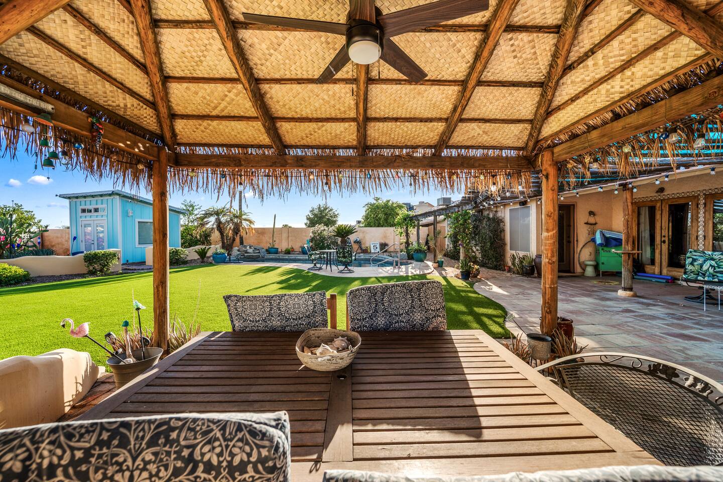★☆ KEY FEATURES ☆★ 🔐 Easy Self Check-In with Smart Lock 🛏️ 3 Bedrooms, 2 Bathrooms – Sleeps up to 8 guests 📶 High-Speed Wi-Fi + Dedicated Workspaces – Ideal for remote work 🐾 Pet-Friendly – $100 per pet, max of 2 dogs 🧺 Washer & Dryer – In-unit laundry for your convenience 🍳 Fully Equipped Kitchen – Appliances, cookware, and utensils included 🚗 Private Parking – Driveway accommodates 3+ vehicles 📹 Exterior Security Camera – For guest safety and property monitoring 🌿 Outdoor Amenities – Pool, propane palapa, grill, fire pit, outdoor dining & seating .☛ Prime Location – Minutes from golf courses, hiking trails, and MLB Spring Training stadiums